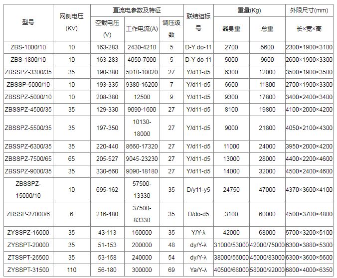 四、直流輸電用這類整流變壓器,冶煉變壓器的電壓一般在110kV以上,容量在數(shù)萬千伏安。需特別注意對(duì)地絕緣的交、直流疊加問題。此外還有電鍍用或電加工用直流電源,勵(lì)磁用直流電源,充電用及靜電除塵用直流電源等。